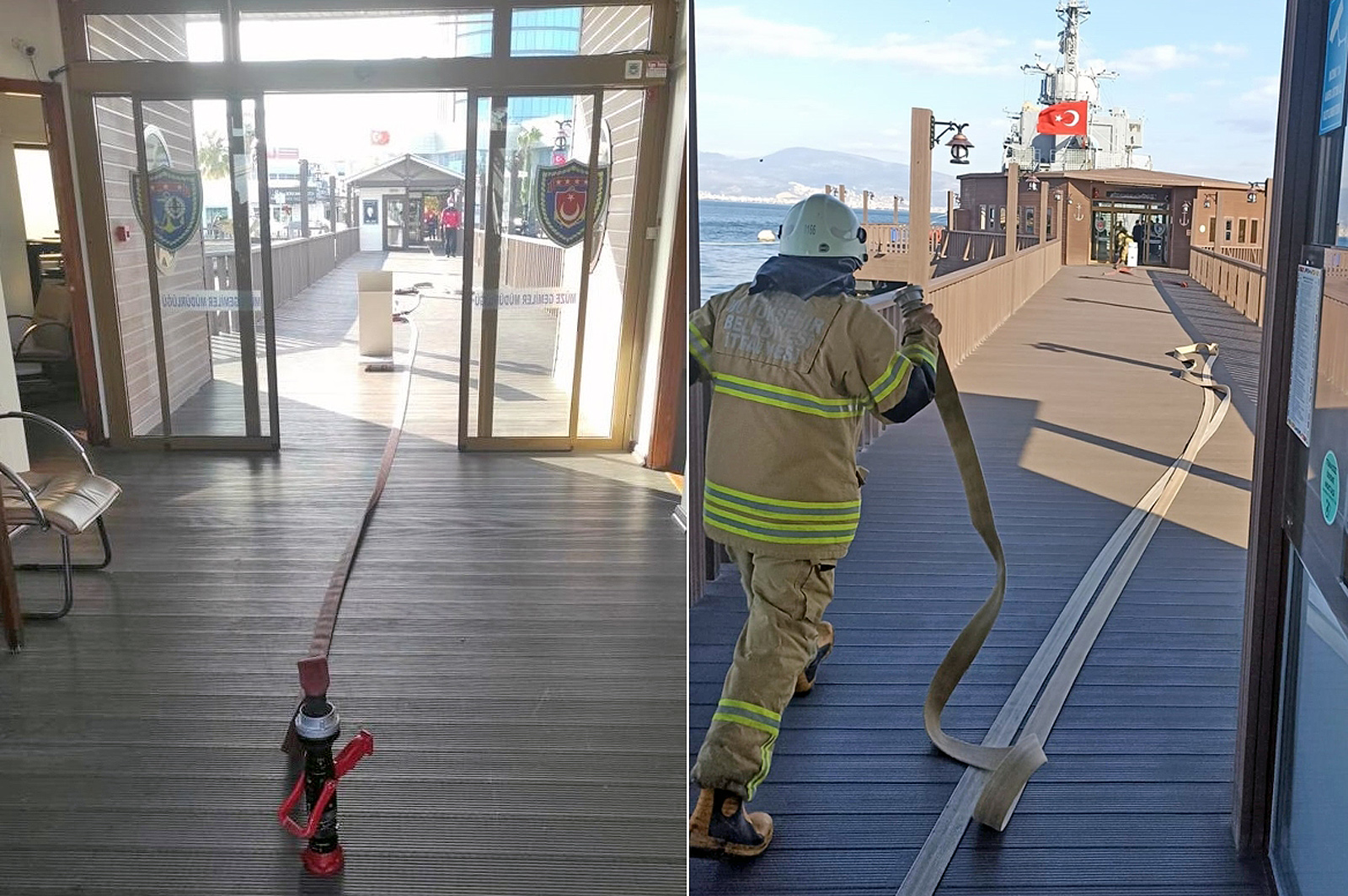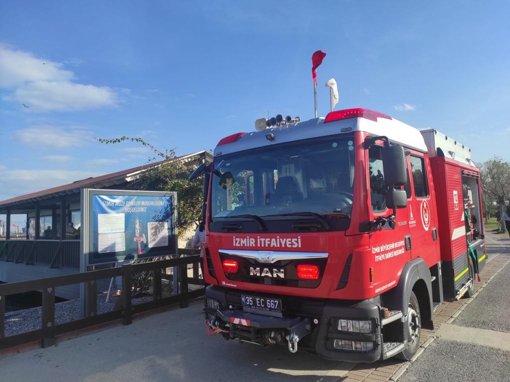 İzmir Büyükşehir İtfaiye Dairesi Başkanlığı ve Güney Deniz Saha Komutanlığına bağlı İnciraltı Deniz Müze Komutanlığı ile ortak tatbikat düzenledi.