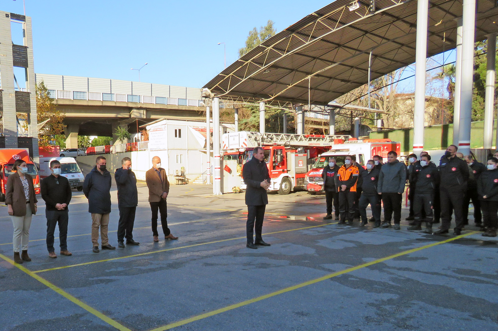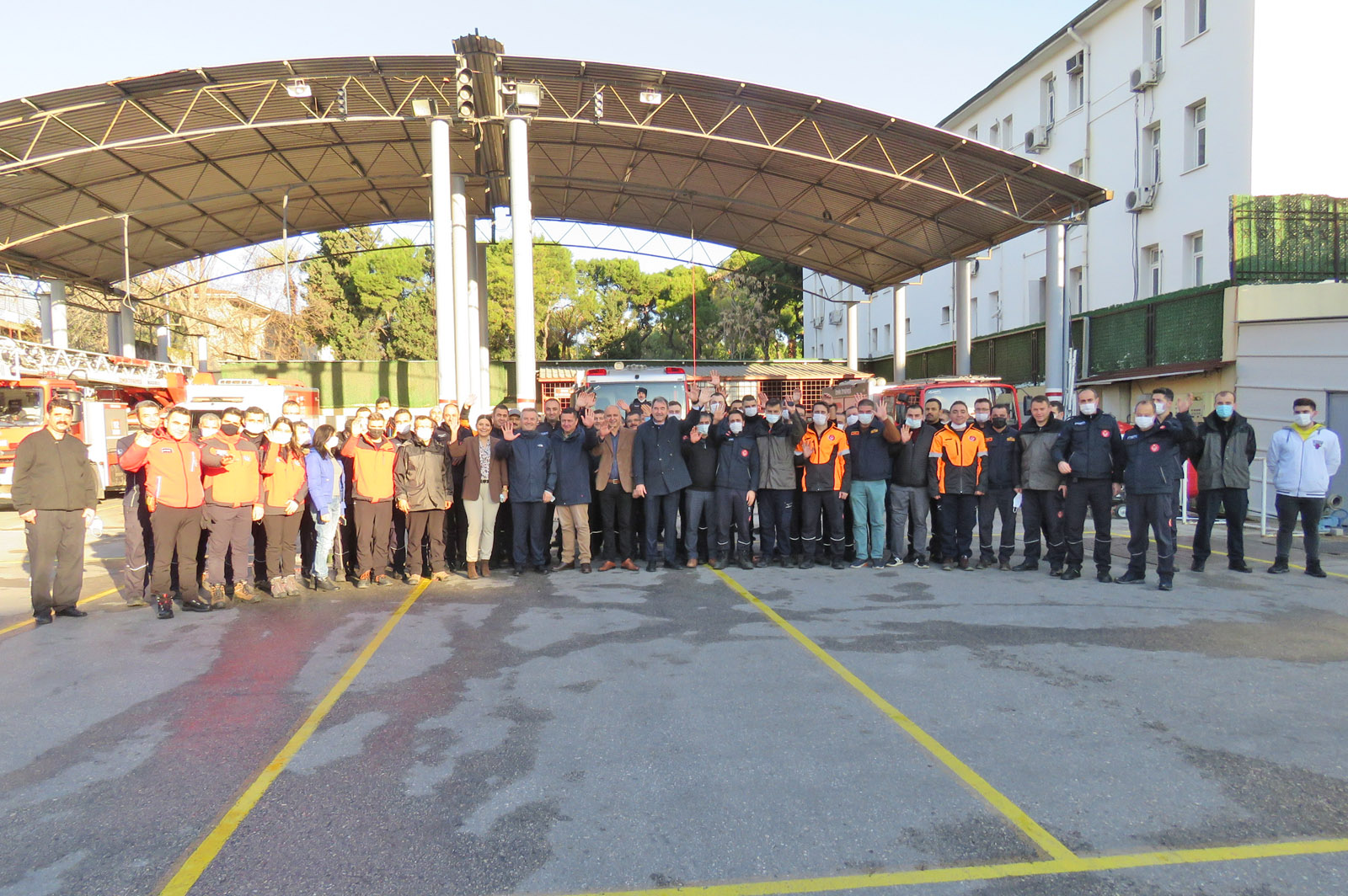 İzmir Büyükşehir Belediyesi İtfaiye Dairesi Başkanı İsmail Derse ve Yangın ve Acil Müdahale Şube Müdürü Aydın Mutlu, Arama Kurtarma ve Afet İşleri Şube Müdürü Şenol Dereköy, Orman Köyleri ve Kırsal Alan Yangınları Müdahale Şube Müdürü Yaşar Korkmaz, Eğitim Şube Müdürü Serkan Korkmaz ile Planlama Ve Destek Hizmetleri Şube Müdür Vekili Pelin Haktanır 2022’ye girerken, İtfaiye personelinin yeni yılını kutladı ve iyi dileklerini bildirdiler.