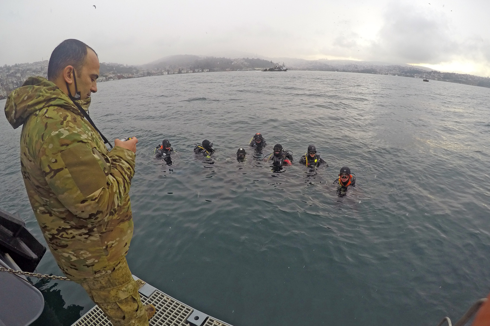İzmir İtfaiye Su Altı ve Su Üstü Arama Kurtarma Birimi dalgıçları, Deniz Kuvvetleri Komutanlığı'na bağlı Kurtarma ve Su altı Komutanlığı "Kurbağa Adam" kursuna katıldılar.