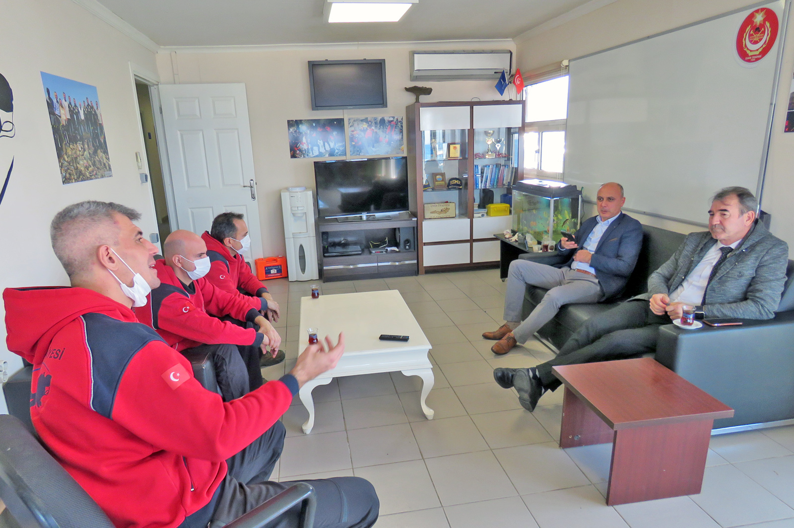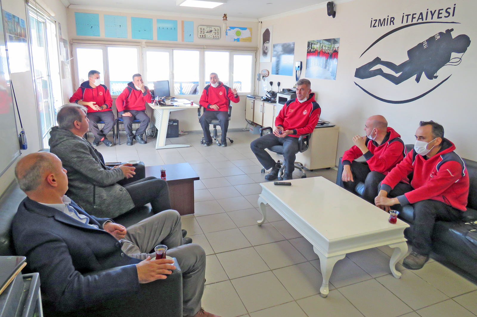 İzmir İtfaiyesi İnciraltı Su Altı ve Su Üstü Kurtarma Grub binasını, Daire Başkanı İsmail Derse ve Yangın ve Acil Müdahale Şube Müdürü Aydın Mutlu bilgi alışverişi için ziyaret ettiler.