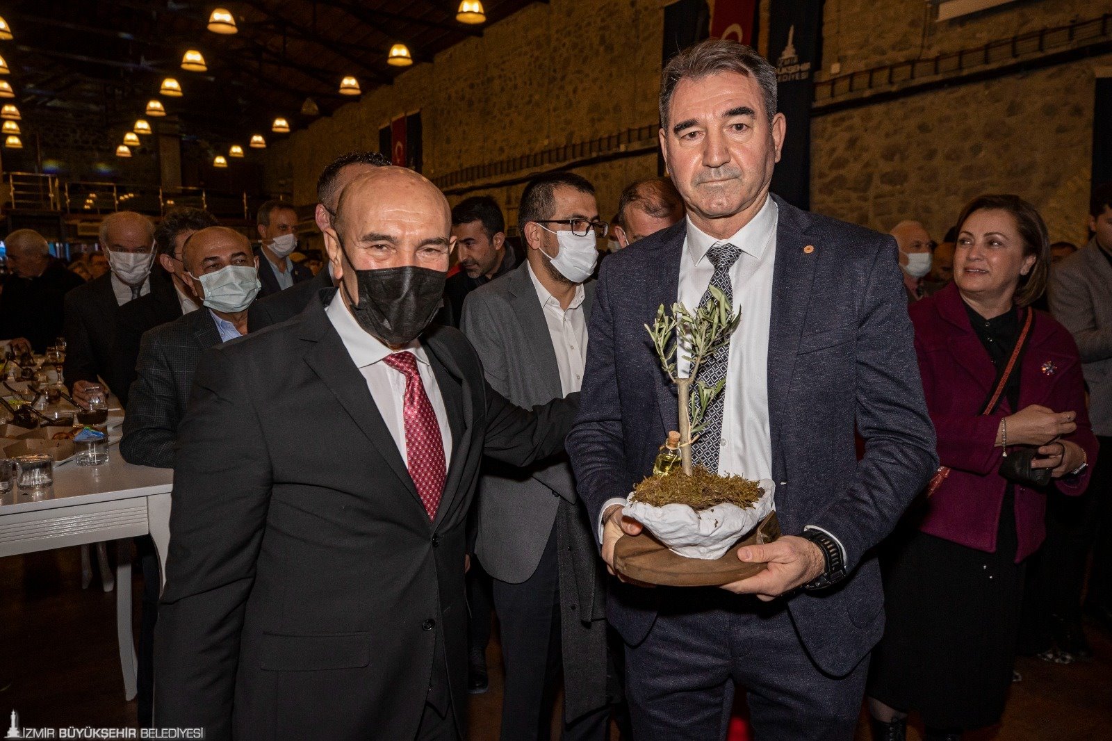 İklim değişikliğine karşı çalışmaları nedeniyle 2021 İz Bırakanlar ödülüne layık görülen Başkan Tunç Soyer, “Doğayla uyumlu bir uygarlık kurmanın insanlığın en temel meselesi haline geldiği çağda yaşıyoruz. Bu çağın sonunu biz belirleyeceğiz. Ya iklim devrimiyle doğadaki tüm canlılarla birlikte yaşamaya devam edeceğiz ya da gezegenimizin yangın yerine dönmesine seyirci kalacağız. Gezegenimiz bizim ortak kaderimiz. Burası milyarlarca aynı cümlenin aynı anda söylenip tek bir hikayeye dönüştüğü yer. Her birimizin hangi cümleler kurduğunun çok önemi var. Ortak hikayemizin mi yoksa kendi hırsımızın mı cümlelerini kuruyoruz. Gezegenimizin geleceğini belirleyecek bu. Gezegenimizin bu harap hali bize çok açık anlatıyor ki insanın doymak bilmez cümlelerini duymaya tahammülü yok. Bu nedenle biz İzmir’de başka cümleler kurarak başladık işe. Başka bir tarım mümkün diyoruz. Çünkü iklim kriziyle yüzleşen çağımızda en eksilen şey su ve biyolojik çeşitlilik. Her ikisinin de sebebi yanlış tarım politikaları” dedi.