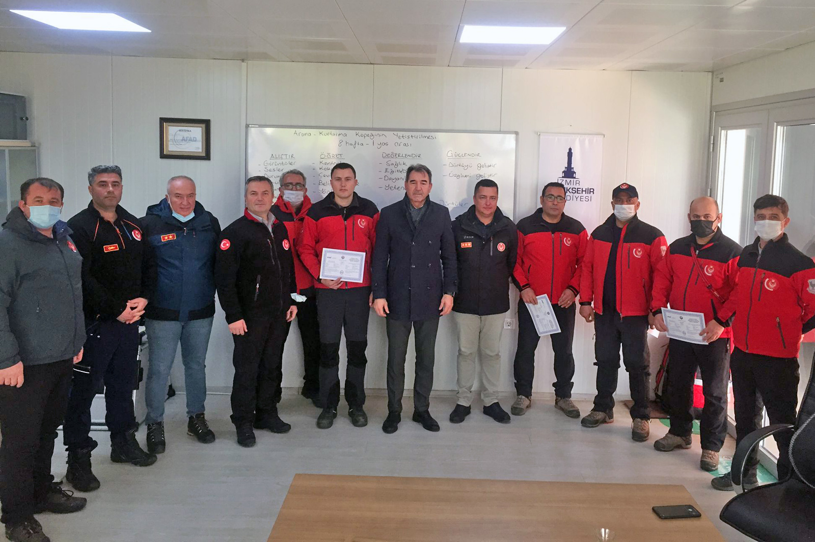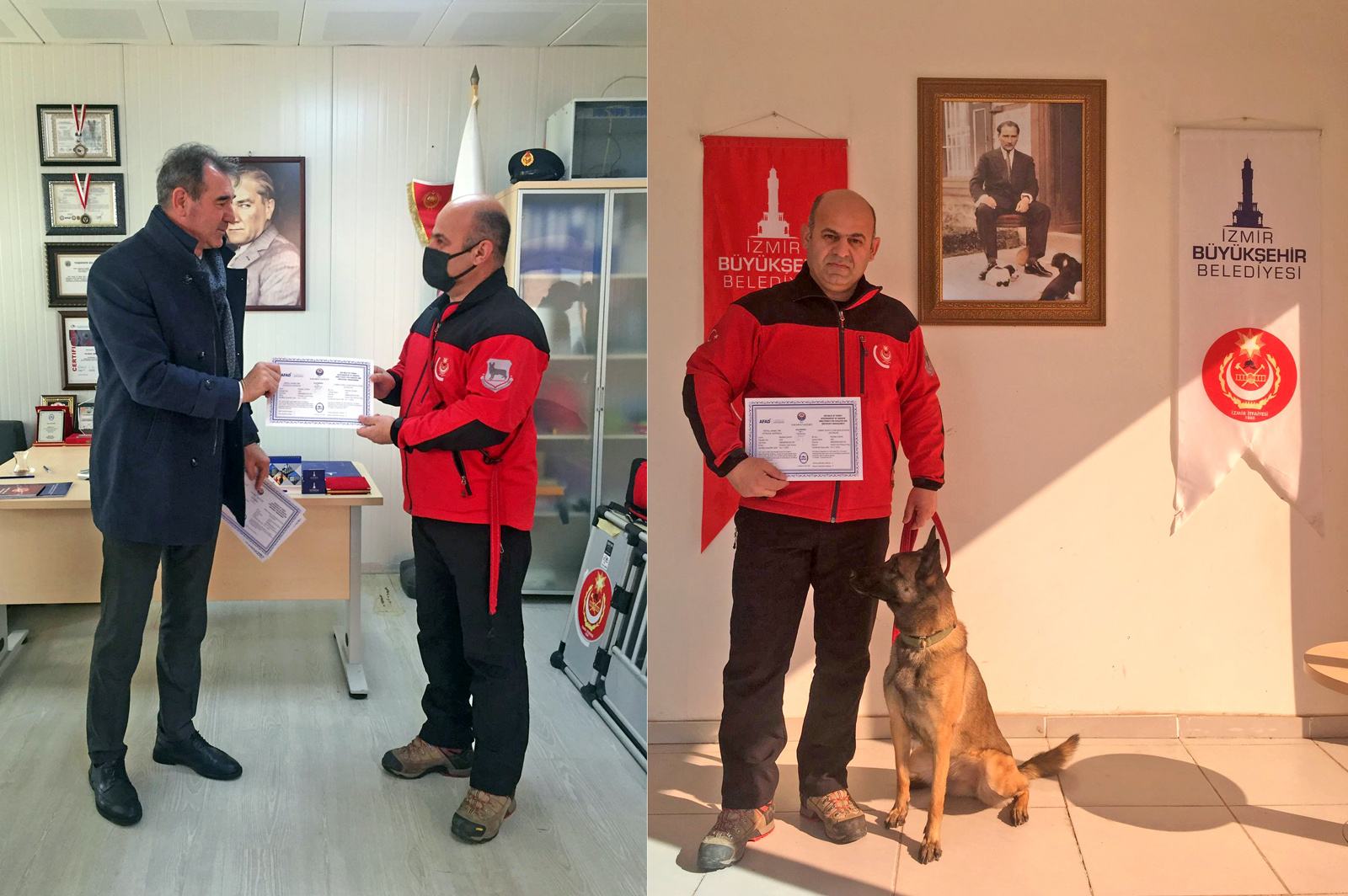 Türkiye İtfaiye birimleri içinde ilk defa İzmir Büyükşehir Belediyesi İtfaiye Daire Başkanlığı'nın bünyesinde kurulan Arama Kurtarma ve Sağlık (AKS) birimine bağlı K9 Köpekli Arama Kurtarma Ekibi görevine devam ediyor.