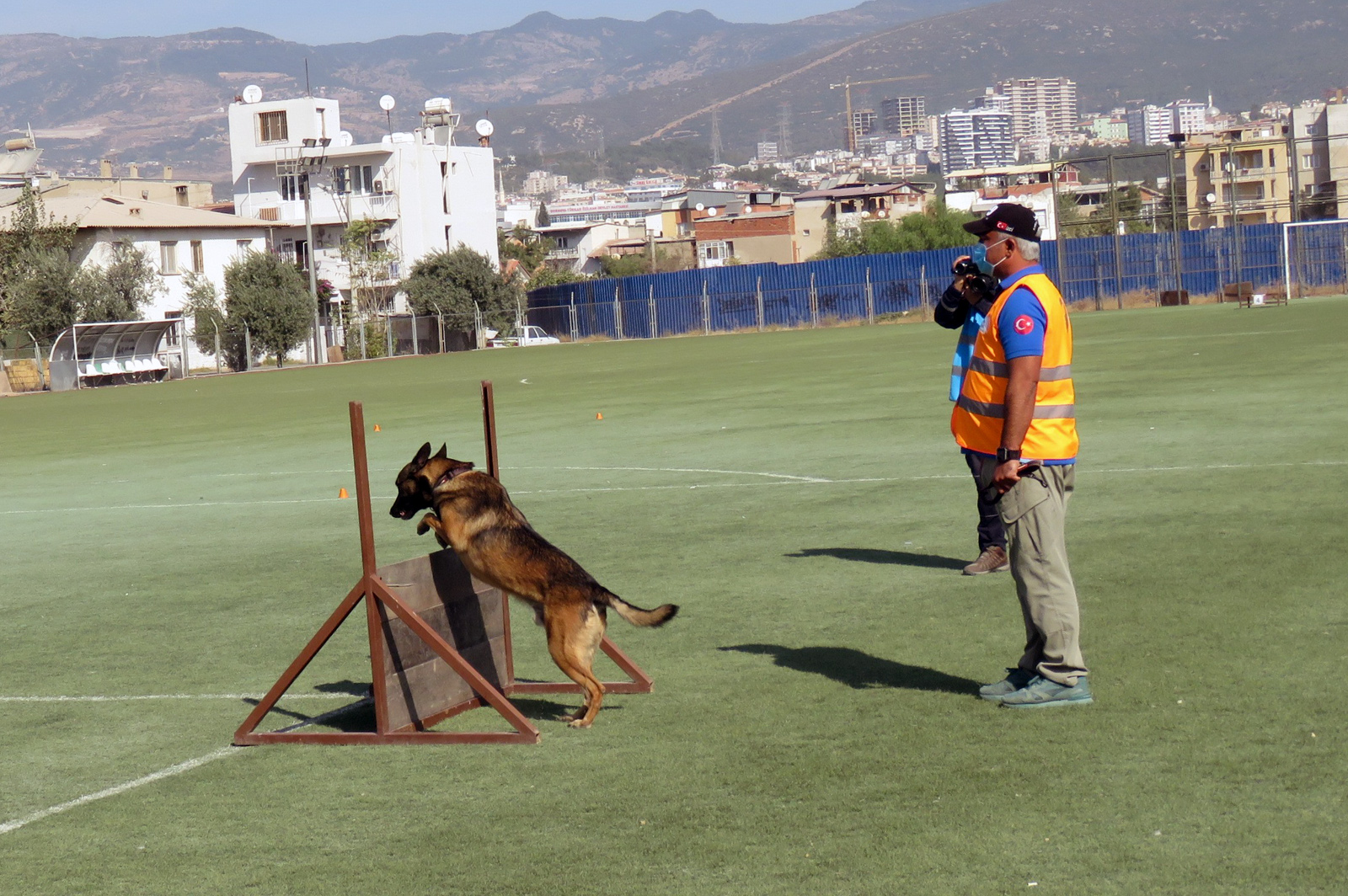 K9 Köpek eğitimleri İzmir Büyükşehir İtfaiyesi’nin Buca Toros Yangın ve Doğal Afet Eğitim Merkezi'nde günlük olarak sabah 8 de başlıyor ve gün boyu sürüyor.