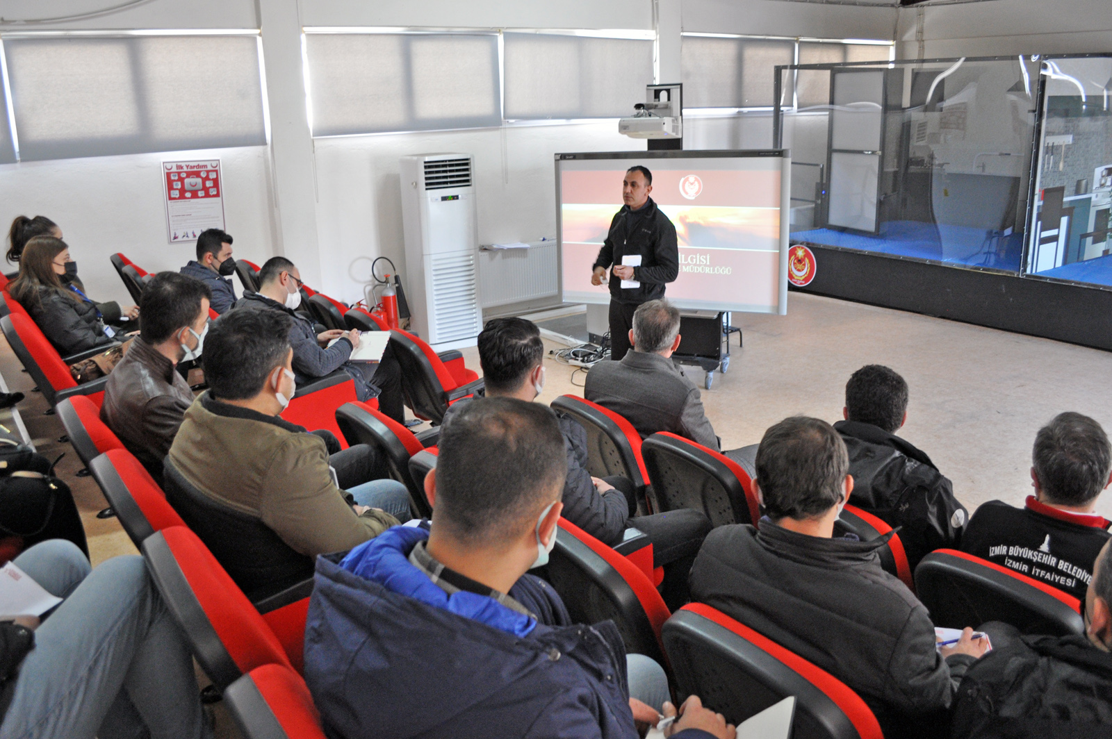 İzmir Büyükşehir Belediyesi İtfaiye Dairesi Başkanlığı Eğitim Şube Müdürlüğü Eğitmenleri gerek sivil vatandaşlar, gerek kamu kurum kuruluşları, gerekse belediye çalışanlarına eğitimler vermeye tüm hızıyla devam ediyor.