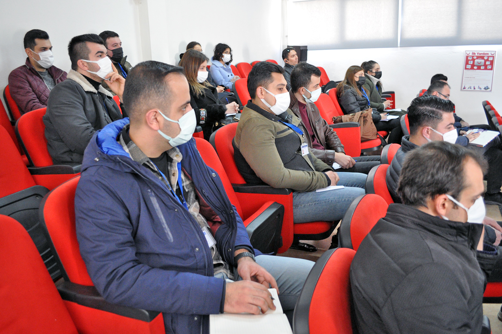 Bu kapsamda İzmir Yangın ve Doğal Afet Eğitim Merkezi ile İtfaiye Denetim ve Önleme Şube Müdürlüğü hizmet binasında, İtfaiye Denetim ve Önleme Şube Müdürlüğü’nün 55 personelinden, işe yeni başlayan 25 görevlisine yönelik, yangın durumuna karşı “Temel Yangın Bilgisi” ve “Binaların Yangından Korunması Hakkında Yönetmelik” ile ilgili eğitimler verildi. Eğitim modülleri 5’er kişilik gruplar halinde bina kullanım sınıfları ve yangın güvenlik tedbirlerine göre periyodik olarak devam etmektedir.