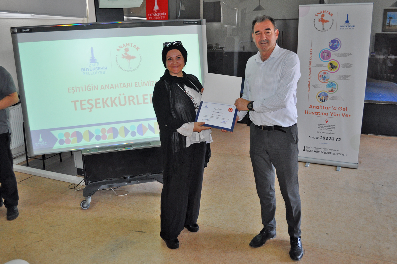 İzmir Büyükşehir Belediyesi Anahtar Kadın Çalışmaları Bütüncül Hizmet Merkezi eğitmenleri tarafından verilen 120 saatlik eğitim Salı ve Perşembe günleri gerçekleştirildi.