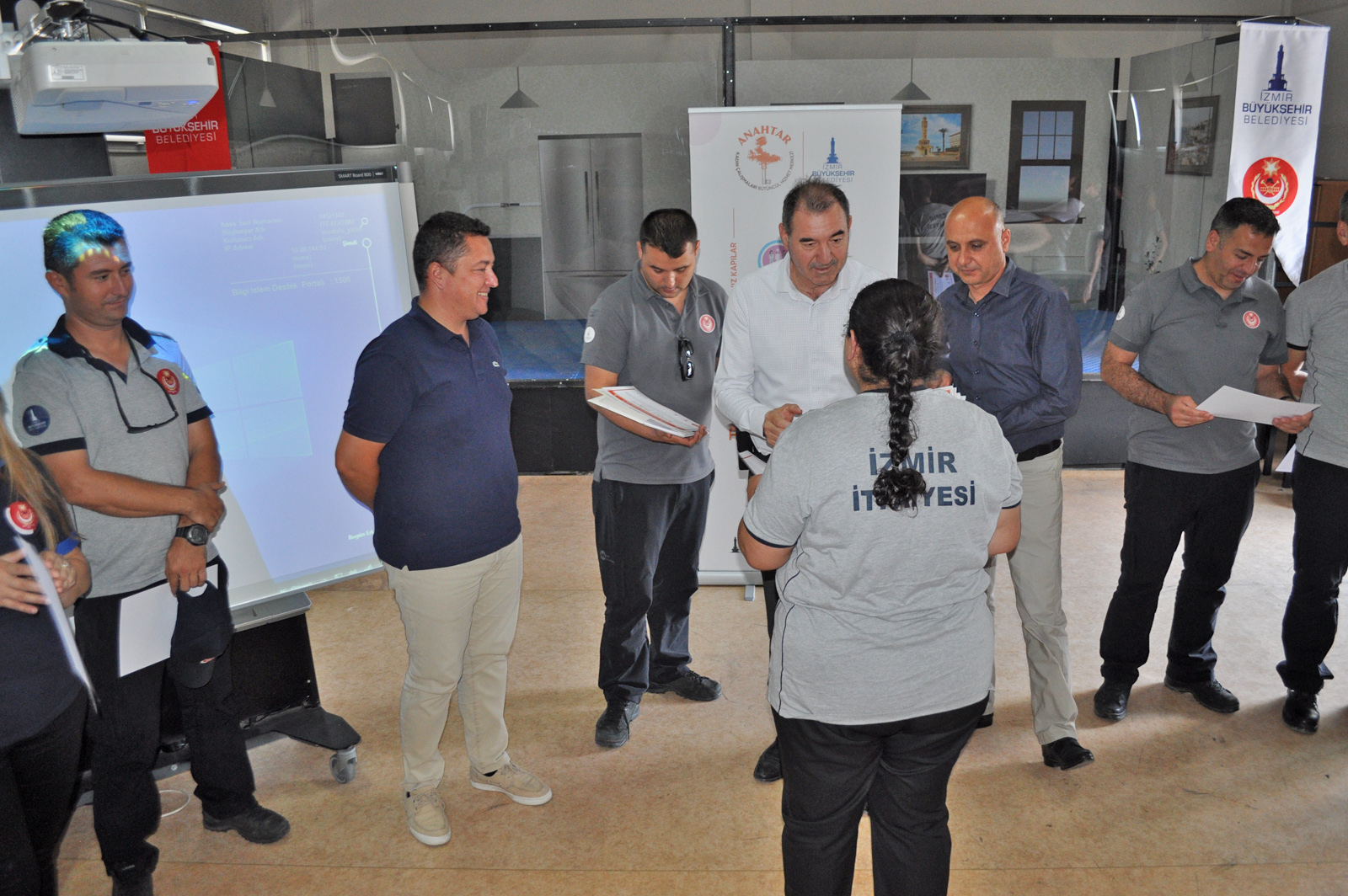 Kursu başarıyla tamamlayarak katılım belgesi almaya hak kazanan kursiyerlere, İtfaiye Dairesi Başkanı İsmail Derse, Yangın ve Acil Müdahale Şube Müdürü Aydın Mutlu, Arama Kurtarma ve Afet İşleri Şube Müdürü Şenol Dereköy ile Eğitim Şube Müdürü Serkan Korkmaz tarafından belgeleri takdim edildi.