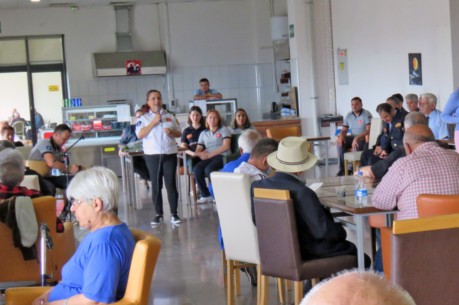 Derse "Sizlerle olmak çok değerli. Bir çok kez yangınlarda, çok farklı olaylarda bizleri görmüşsünüzdür. Elimizden geldiğince tüm vatandaşlarımıza yardımcı olmak, yol göstermek, yeri geldiğinde eğitimler vermek ve aynı zamanda siz büyüklerimize sahip çıkmak amacındayız" dedi.