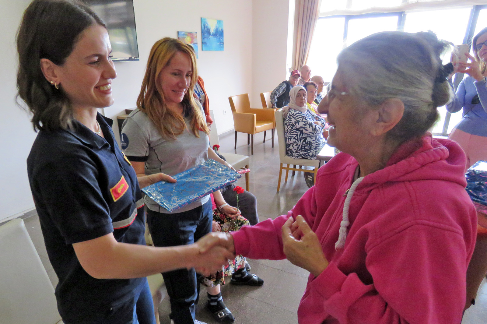 Ziyaret sonuna doğru, tüm huzurevi sakinlerine çiçeklerin dağıtan itfaiye personeli de bir süpriz ile karşılaştı.