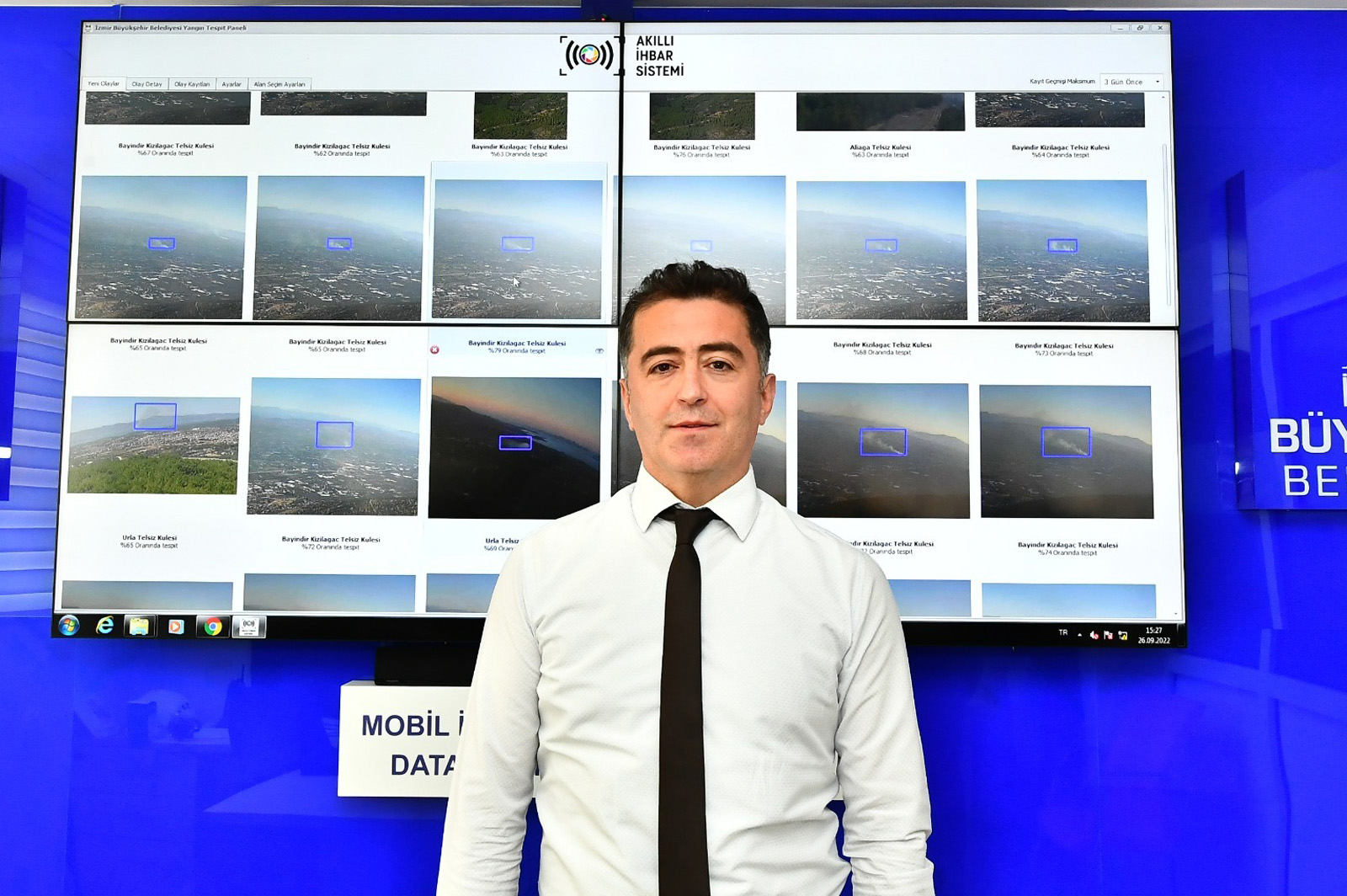 İzmir Büyükşehir Belediyesi Bilgi İşlem Dairesi Başkanı Ahmet Ata Temiz ise alınan ihbar sonucunda sistemin otomatik olarak dumanı algılayıp bunu birimlere ilettiğini söyledi. İlk aşamada 12 kulede 48 kamera ile ormanlık bölgeleri izlediklerini, şimdi ise 18 adet kulede toplam 72 kamera ile sistemin aktif olarak çalıştığını vurgulayan Ata Temiz, “Bu sayıyı yüzde yüz noktasına ulaştırmak için çalışıyoruz. Dünyada birkaç ülkede bu sistem var. Yapay zeka aslında tüm afetlerde kullanılacak duruma geldi. Orman yangınları ile başladık ama tüm şehirdeki sel su baskınları, dere taşkınları gibi akla gelebilecek her afette kullanılabilecek seviyede. İzmir’in güvenliği ve afetlere hazır duruma gelmesi için sistemi sürekli geliştiriyoruz” diye konuştu.