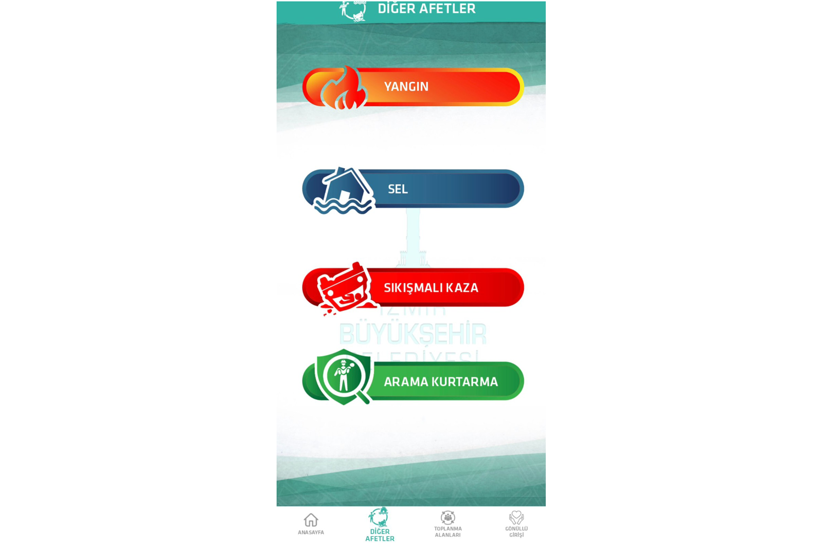 İzmir Büyükşehir Belediyesi’nin Mart 2021’de hizmete aldığı Acil İzmir mobil uygulaması, akıllı telefonlar aracılığıyla kullanılabiliyor.