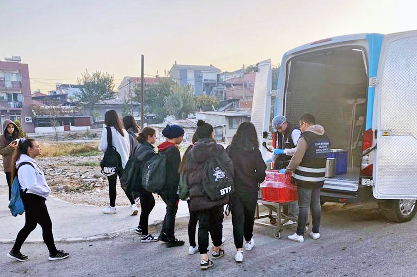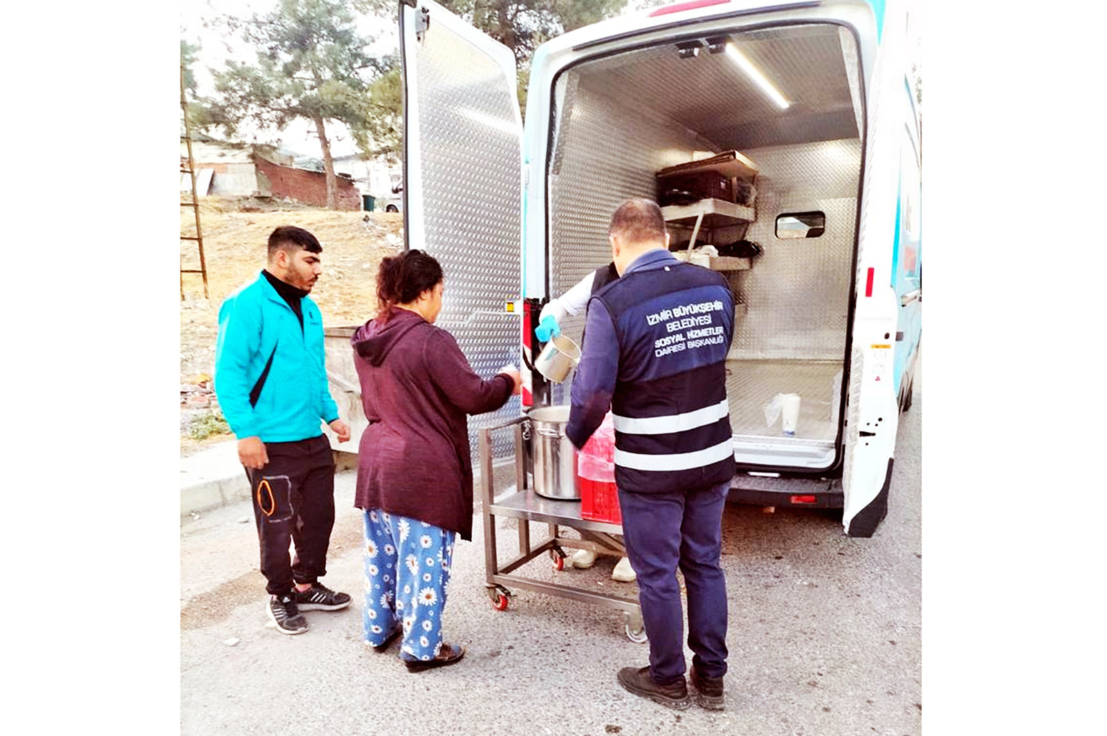 Buca'da evleri tahliye edilen yurttaşlara İzmir Büyükşehir Belediyesi Sosyal Hizmetler Dairesi Başkanlığı tarafından battaniye ulaştırıldı.