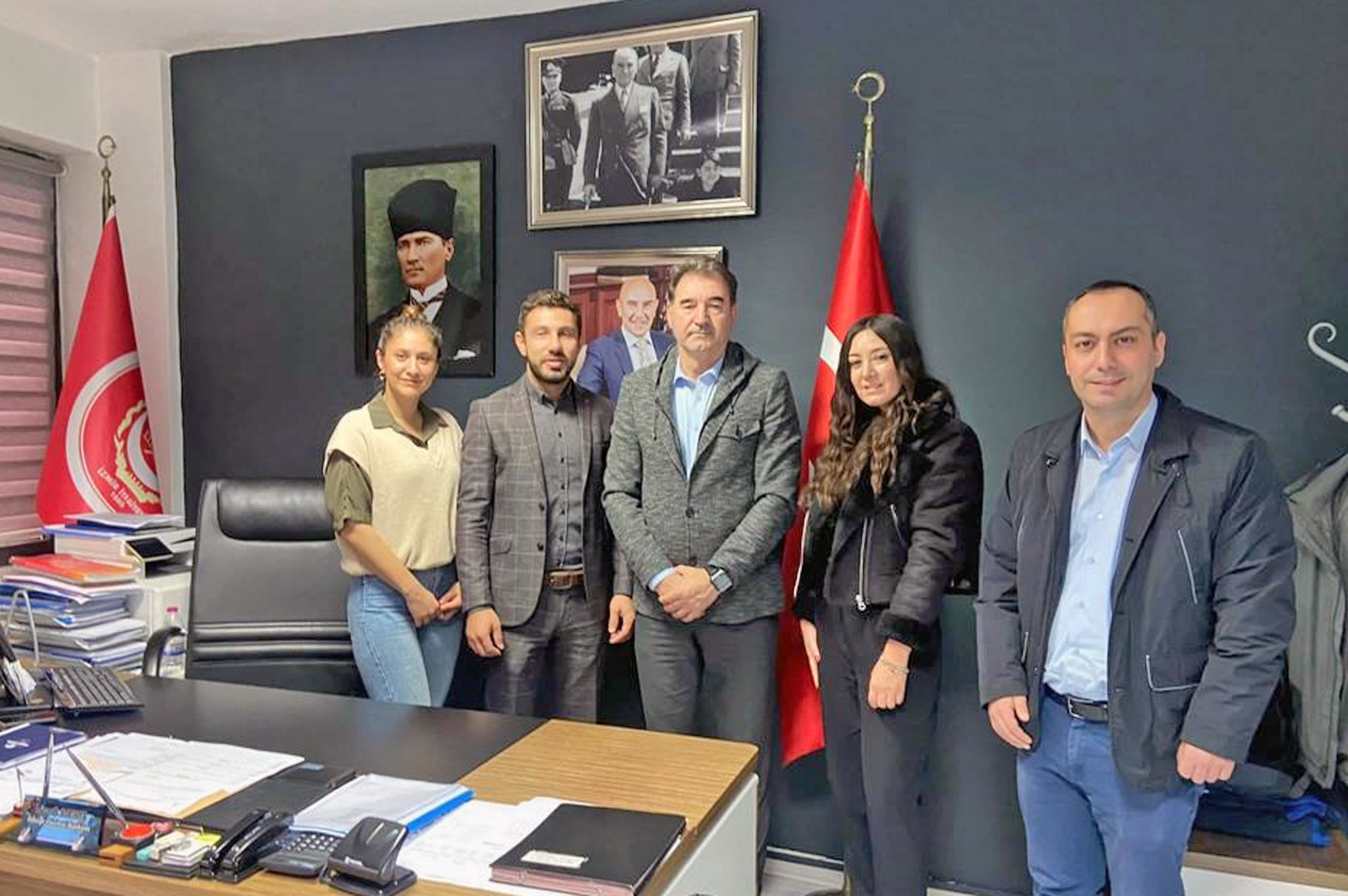 İzmir Esnaf ve Sanatkarlar Odaları Birliği (İESOB) Mesleki ve Teknik Anadaolu Lisesi Müdürü Yener Keskinpala, İtfaiye ve Yangın Güvenliği bölüm öğretmenleri Ali Rıza Erdoğan, Şeyma Şimşek ve Oya Çetin İzmir Büyükşehir Belediyesi İtfaiye Dairesi Başkanı İsmail Derse’yi ziyaret ettiler.