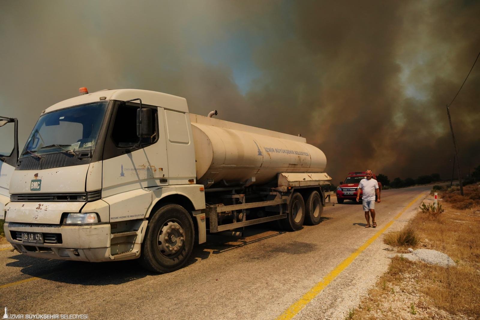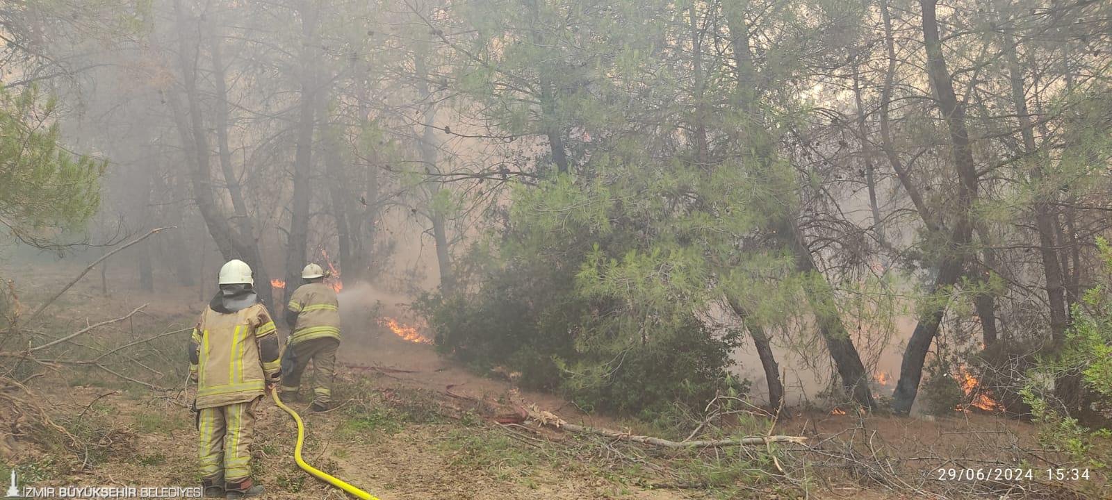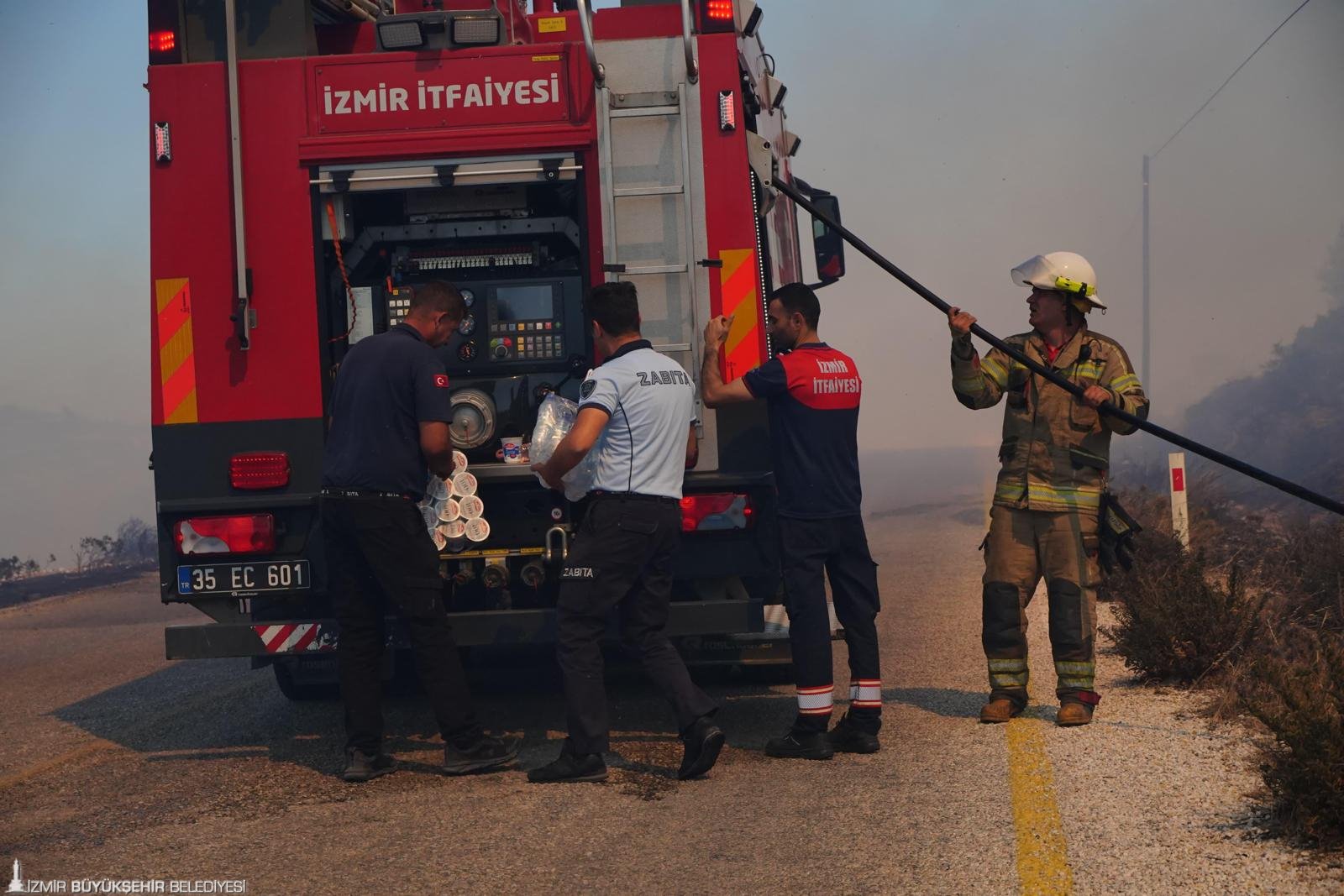 İzmir İtfaiyesi ve Orman İtfaiyesi ekipleri akşam saatlerinde Bornova Çamiçi Köyü'nde makilik alanda, Ödemiş Birgi'de otluk ve makilik alanda çıkan yangına müdahalesini sürdürüyor. İlçe belediyesi de su tankeri ile yangına destek veriyor.