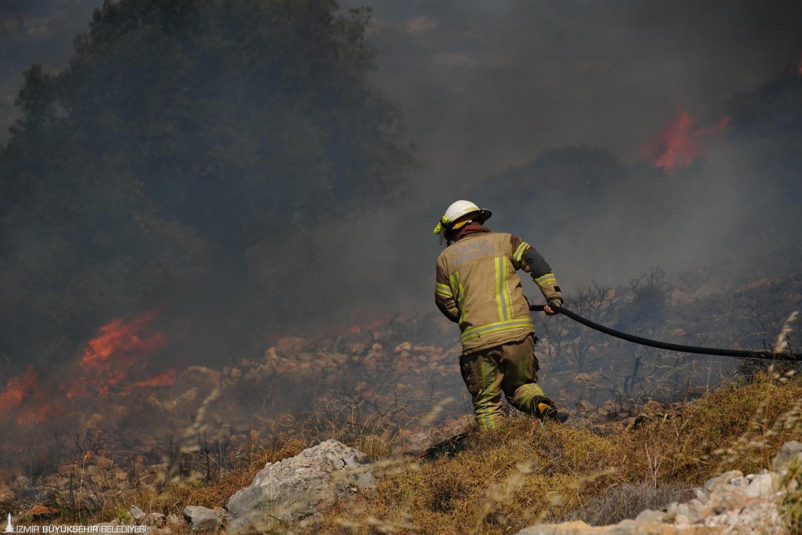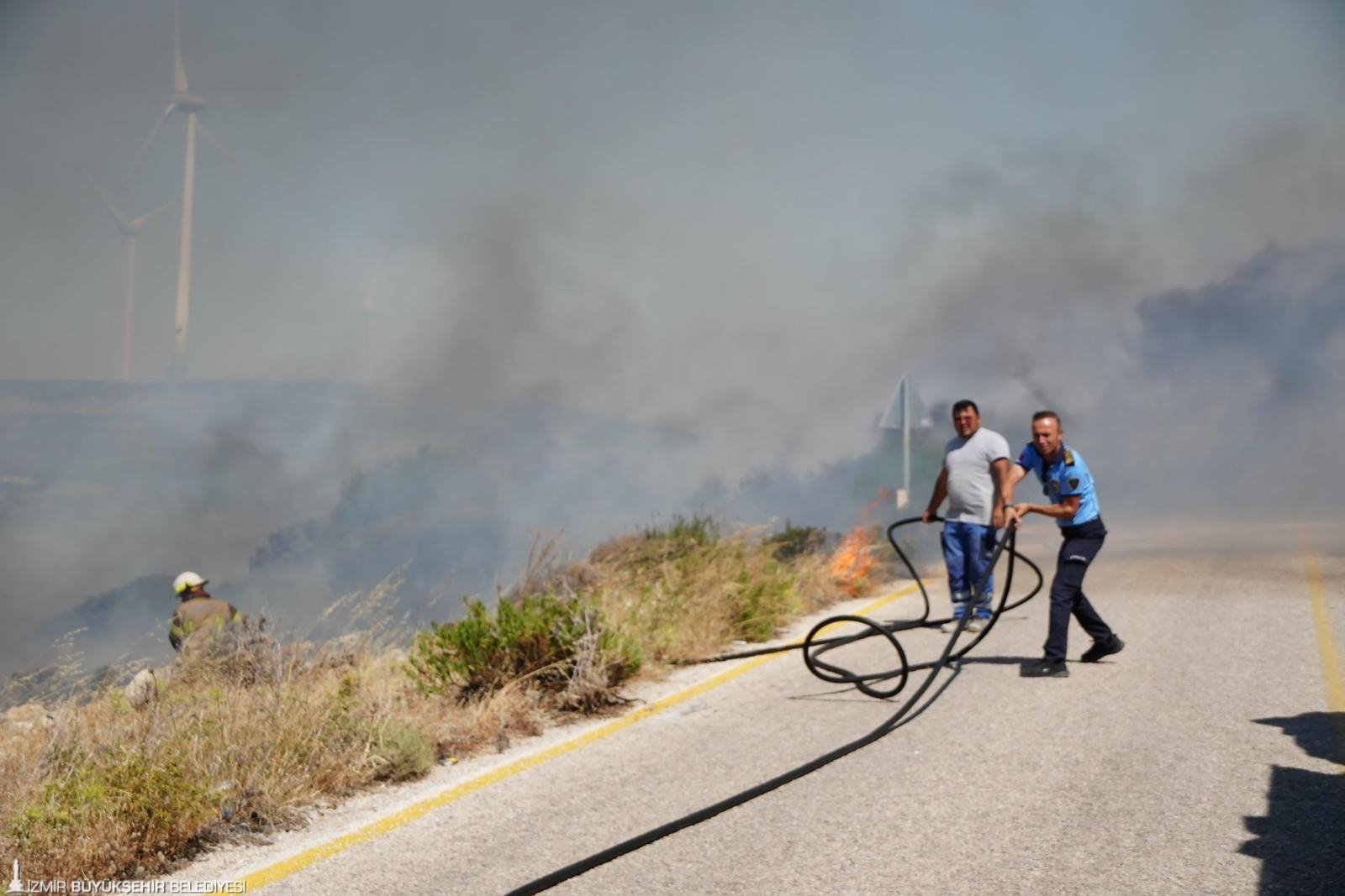 İzmir'de bugün rüzgarın etkisiyle 13 noktada yangın çıktı. İzmir İtfaiyesi 220 araç ve 350 personel ile hızlı bir şekilde yangınlara müdahale etti. Bazı bölgelerde Orman İtfaiyesi, yangın uçakları ve yangın helikopterleriyle eş zamanlı çalışıldı. İzmir Büyükşehir Belediyesi Park ve Bahçeler Dairesi Başkanlıığı ile İZSU Genel Müdürlüğü de su tankerleri ile yangın söndürme çalışmalarına destek verdi. Menderes Şaşal'da orman, Urla Kuşçular ile Menemen Koyundere'de otluk alan, Tire Bülbüldere'de makilik alan, Menemen-Manisa yolu üzerinde, Çiğli Harmandalı'da otluk ve makilik alanda, Bayraklı çevre yolu tünel çıkışında yol kenarındaki otluk alanda, Bornova Işıkkent ormanlık alanda çıkan yangınlar kontrol altına alındı, bazı bölgelerde soğutma çalışmaları sürüyor.