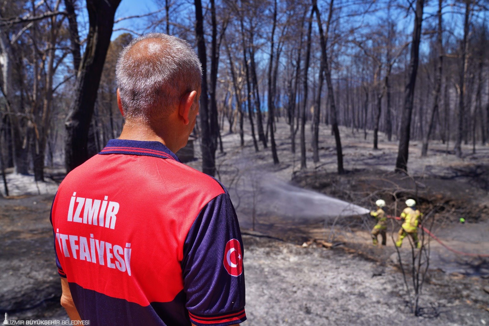 İzmir Büyükşehir Belediyesi İtfaiye Dairesi Başkanlığı İtfaiye Orman Köyleri ve Kırsal Alan Yangınları Müdahale Şube Müdürü Yaşar Korkmaz da 1 Haziran’dan itibaren İzmir’de olağanüstü yangınların yaşandığını ifade etti. Son bir ayda 45 orman yangını meydana geldiğini, 2023 yılının aynı ayı ile karşılaştırıldığında neredeyse beş katı orman yangını çıktığını anlatan Yaşar Korkmaz, “Sadece bu hafta sonu 21 orman yangını meydana geldi. Cumartesi yalnızca 8 saat içerisinde 86 yangın çıktı. Bunun 6’sı ot yangını olarak başlayıp ormanlara sirayet etti ve 11 orman yangını çıktı. 150 araç, 350 personelle yangınlara müdahale ettik. Haziran ayının başlamasıyla birlikte İzmir’de kırsal alanlarda genellikle örtü yangınları olurdu. Ancak bu yaz çok farklı bir durum yaşandı. 27 yıllık mesleki hayatımda hiç görmediğim yangınları kısa zamanda yaşadık. Orman yangını nerede çıkarsa çıksın hepimizi mutsuz ediyor. Çünkü güzel bir doğaya ve yeşil örtüye sahibiz. Biz de bunları gelecek nesillere daha sağlam devretmek zorundayız” dedi.