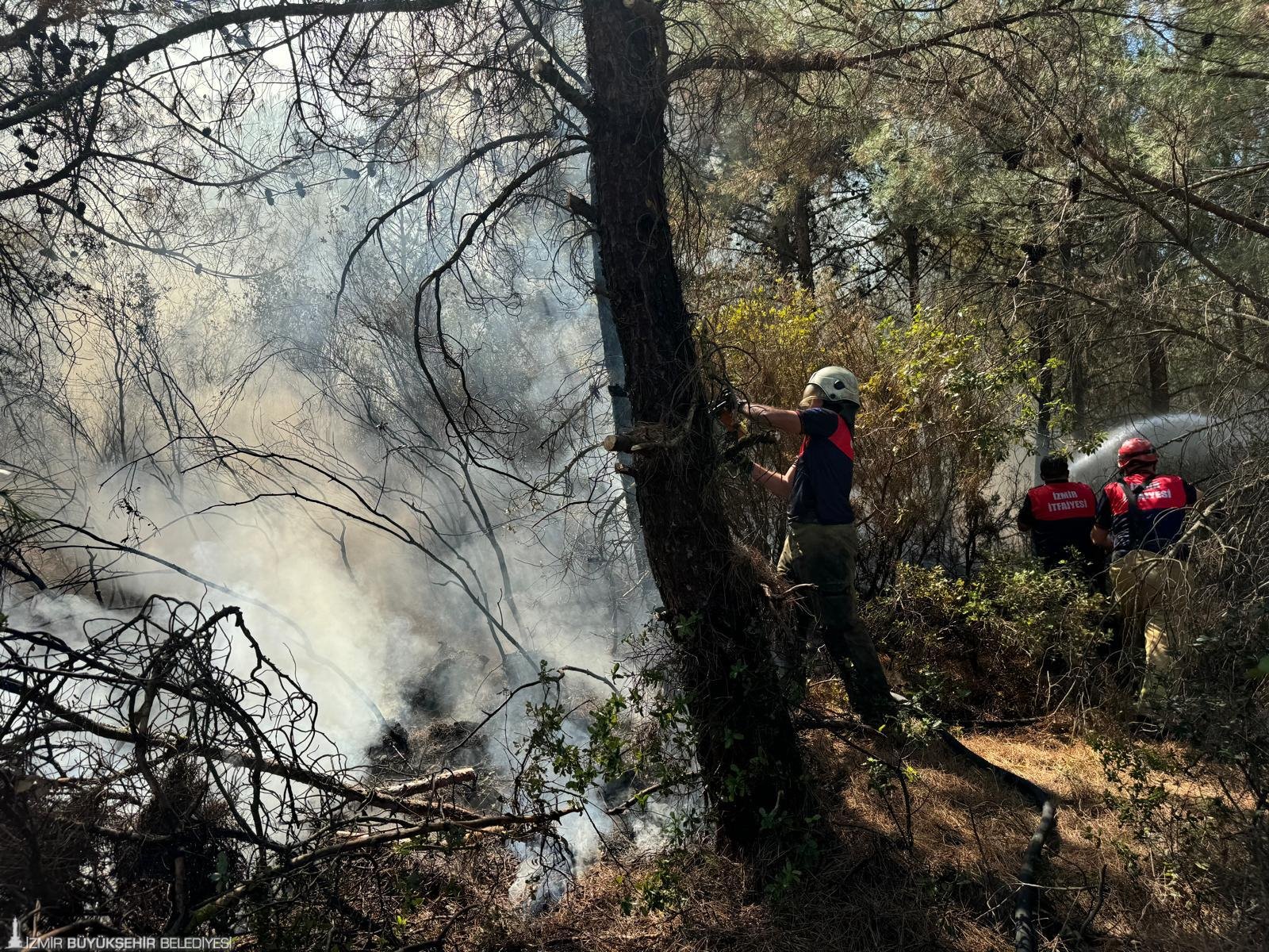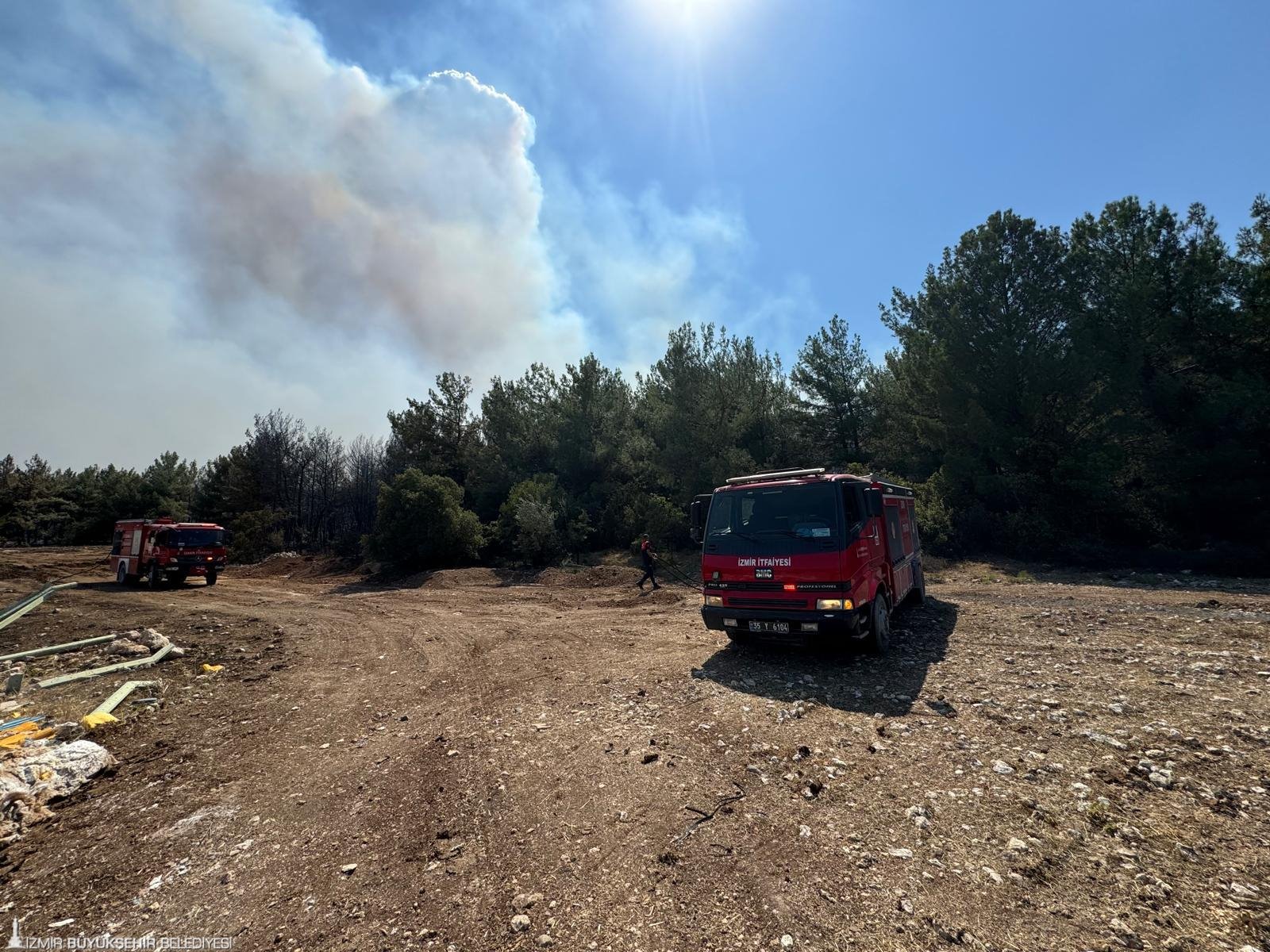 İzmir Büyükşehir Belediyesi İtfaiye Dairesi Başkanlığı’na bağlı itfaiye ekipleri, kentin dört ilçesinde süren orman yangınlarını kontrol altına almak için İzmir Orman Bölge Müdürlüğü ekiplerine destek veriyor. Gaziemir ile Buca ilçeleri arasında ve Foça Bağarası'nda çıkan orman yangınlarına 100 personel, 20'ye yakın arazöz ve çok sayıda su tankeri ile müdahale ediliyor. İzmir itfaiyesi, birçok bölgede yangınlara hızlı ve etkili müdahale edebilmek için ağaçları keserek müdahale yolu açtı.